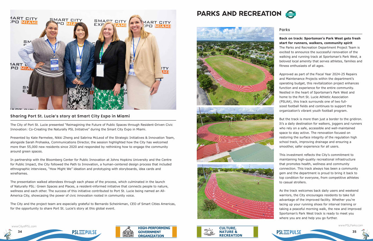 Approved as part of the Fiscal Year 2024-25 Repairs and Maintenance Projects within the department’ s operating budget, this revitalization project enhances function and experience for the entire community. Nestled in the heart of Sportsman’ s Park West and home to the Port St. Lucie Athletic Association( PSLAA), this track surrounds one of two fullsized football fields and continues to support the organization’ s vibrant youth football program.