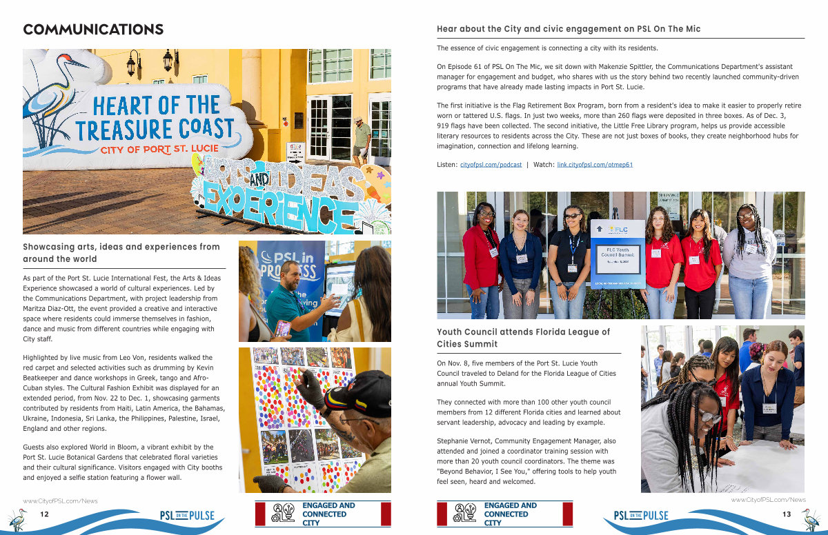 As part of the Port St. Lucie International Fest, the Arts & Ideas Experience showcased a world of cultural experiences. Led by the Communications Department, with project leadership from Maritza Diaz-Ott, the event provided a creative and interactive space where residents could immerse themselves in fashion, dance and music from different countries while engaging with City staff.