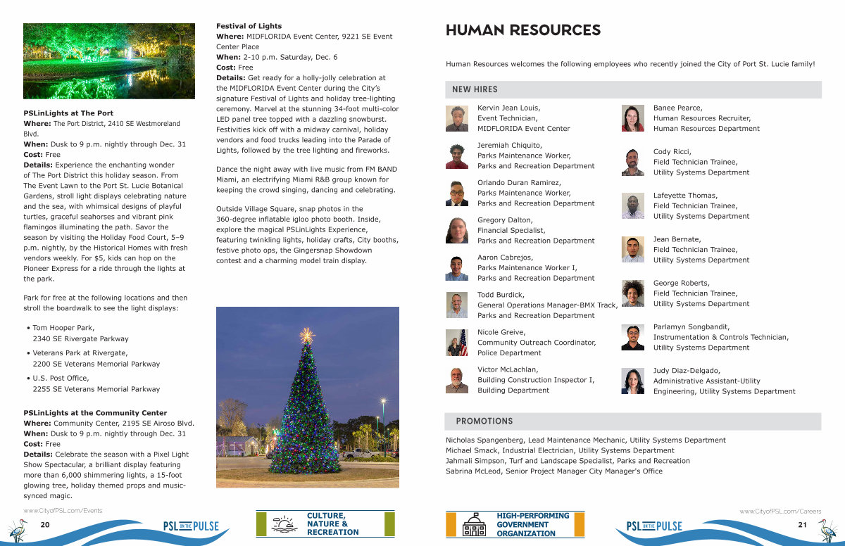 Nicholas Spangenberg, Lead Maintenance Mechanic, Utility Systems Department Michael Smack, Industrial Electrician, Utility Systems Department Jahmali Simpson, Turf and Landscape Specialist, Parks and Recreation Sabrina McLeod, Senior Project Manager City Manager ' s Office www. CityofPSL. com / Careers