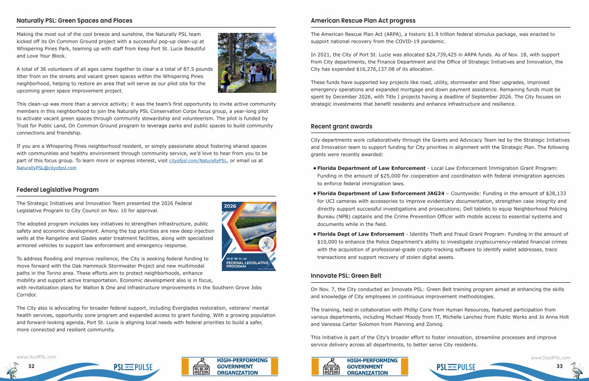 In 2021, the City of Port St. Lucie was allocated $ 24,739,425 in ARPA funds. As of Nov. 18, with support from City departments, the Finance Department and the Office of Strategic Initiatives and Innovation, the City has expended $ 16,276,137.08 of its allocation.