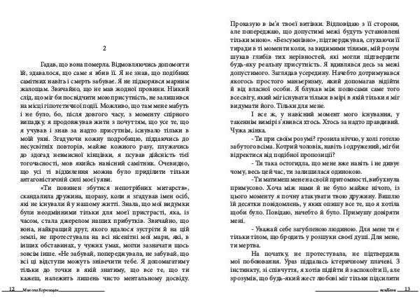 Гадав, що вона померла. Відмовляючись допомогти їй, здавалося, що саме я вбив її. Я не знав, що подібних самітних навіть і смерть забуває. Я не підкорявся марним жалощам. Звичайно, що не мав жодної провини. Ніякий слід, що міг би посвідчити мою присутність, не залишився на місці гіпотетичної події. Можливо, що там мене мабуть і не було, бо, після довгого часу, з моменту спірного випадку, я продовжував жити з почуттям, що усе те, що я учував і знав за надто присутнім, існувало тільки в моїй уяві. Згадуючи кожну подробицю, піддаючись до несусвітніх повторів, майже кожного разу, плужачись до здогад невмисної кінцівки, я псував дійсність тієї тогочасності, мов якийсь навісний самітник. Очевидно, що усі ті відхилення можна було приділити тільки антагоністичній силі моєї уяви.