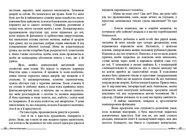 - Маєш на увазі секс? Сам акт? Біль, що ріже тебе під час проникнення, коли, якщо нічого не учуваєш, у простець залишаєшся тільки сухою шматиною? Ти про це?