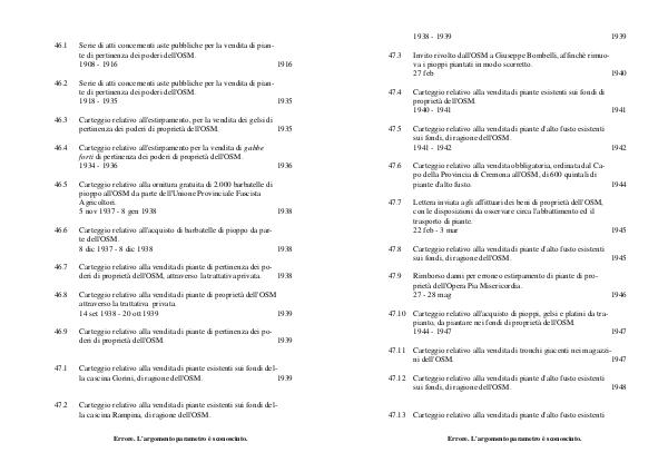 46.2 Serie di atti concernenti aste pubbliche per la vendita di piante di pertinenza dei poderi dell ' OSM. 1918- 1935 1935