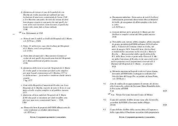 o- Lista de debitori de lo spitale de S. Marta per fitti