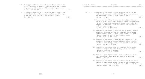 18 Carteggio relativo alla riunione degli utenti dei riali Capuccini e Pietra, per decidere se attuare la proposta di un turno d ' irrigazione per i due riali. 6- 10 mag 1903
