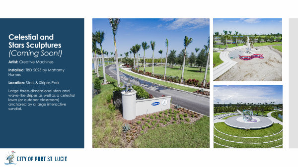 Large three-dimensional stars and wave-like stripes as well as a celestial lawn( or outdoor classroom) anchored by a large interactive sundial.
