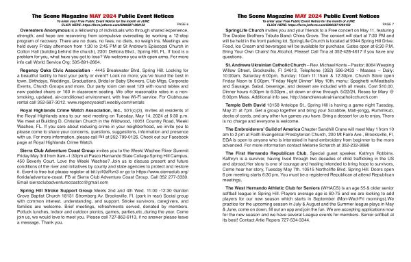 The Scene Magazine MAY 2024 Public Event Notices To enter your Free Public Event Notice for the month of JUNE
