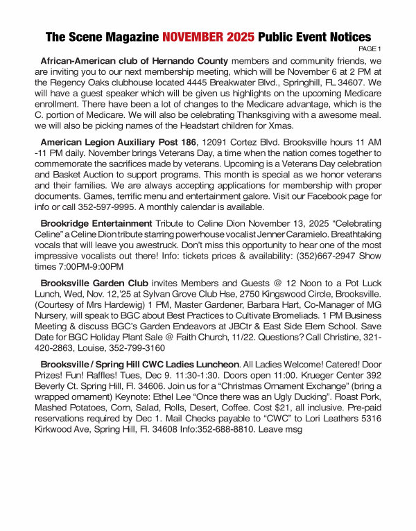 The Scene Magazine NOVEMBER 2025 Public Event Notices
