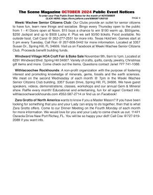 The Scene Magazine OCTOBER 2024 Public Event Notices To enter your Free Public Event Notice for the month of NOVEMBER