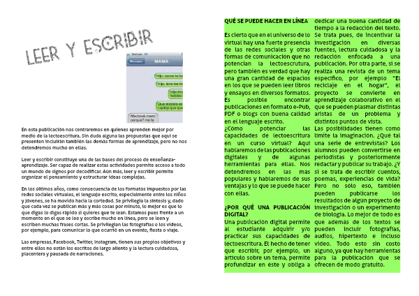 Una publicación digital permite al estudiante adquirir y/o practicar sus capacidades de lectoescritura. El hecho de tener que escribir, por ejemplo, un artículo sobre un tema, permite profundizar en éste y obliga a dedicar una buena cantidad de tiempo a la redacción del texto. Se trata pues, de incentivar la investigación en diversas fuentes, lectura cuidadosa y la redacción enfocada a una publicación. Por otra parte, si se realiza una revista de un tema específico, por ejemplo “El reciclaje en el hogar”, el proyecto se convierte en aprendizaje colaborativo en el que se pueden plasmar distintas aristas de un problema y distintos puntos de vista.