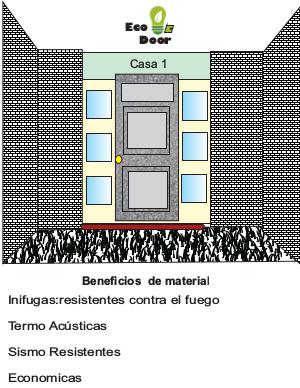 Eco Door Casa 1 Beneficios de material Inifugas:resistentes contra el fuego Termo Acústicas Sismo Resistentes Economicas