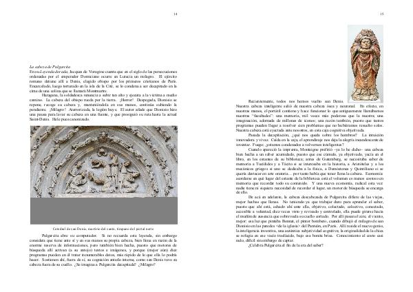 hacer. Sostienen ahí, fuera de sí, su cognición antaño interna, como san Denis tuvo su