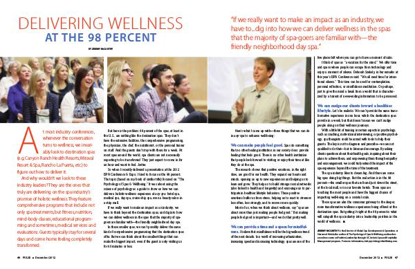 we can deliver wellness in the spas that the majority of spagoers are familiar with—the friendly neighborhood day spa.