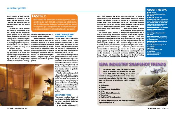 research to bring you factual evidence of the movements in the spa industry. The ISPA Industry Snapshot