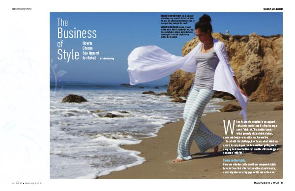 Special Pulse Advertorial The Business of Style How to Choose Spa Apparel for Retail By Christine Schilling 44 PULSE n March/April 2013