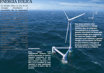 Para llevar adelante estas transformaciones se utilizan distintos tipos de máquinas. Generalmente no se requieren grandes velocidades de viento para producir energía. En la mayoría de los casos los equipos están diseñados para comenzar a generar energía con velocidades del viento de unos 15 km/h. y entregan su potencia máxima a una velocidad del orden de los 40 a 55 km/h.
