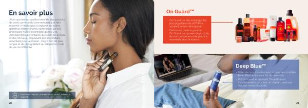 Alors que les incroyables bienfaits des produits de votre commande commencent à se faire ressentir , n ’ hésitez pas à explorer les autres gammes extraordinaires composées de nos précieuses huiles essentielles pures . Des compléments alimentaires aux soins de la peau et des cheveux , en passant par les produits essentiels pour la maison ... Il n ’ y a rien de plus simple et de plus gratifiant qu ’ adopter le mode de vie de dōTERRA .