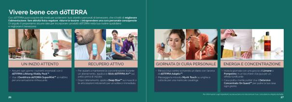 Con dōTERRA puoi scoprire dei modi per sostenere i tuoi obiettivi personali di benessere , che si tratti di migliorare l ’ alimentazione , fare attività fisica regolare , ridurre le tossine o intraprendere una cura personale consapevole . Di seguito ti proponiamo alcune idee per incorporare i prodotti dōTERRA nella tua routine quotidiana e migliorare il benessere :