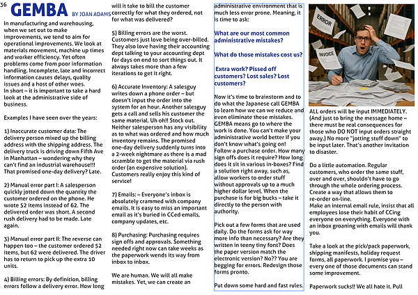 Take a look at the pick/pack paperwork, shipping manifests, holiday request forms, all paperwork. I promise you – every one of those documents can stand some improvement.