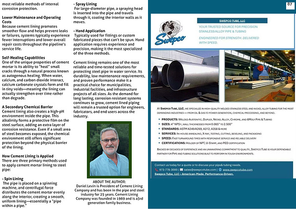 Cement lining remains one of the most reliable and time-tested solutions for protecting steel pipe in water service. Its durability, low maintenance requirements, and proven performance make it a practical choice for municipalities, industrial facilities, and infrastructure projects of all sizes. As the demand for long lasting, corrosion resistant systems continues to grow, cement lined piping will remain a trusted option for engineers, fabricators, and end users across the industry.