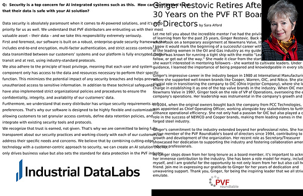 We recognize that trust is earned, not given. That's why we are committed to being fully transparent about our security practices and working closely with each of our customers to address their specific needs and concerns. We believe that by combining cutting-edge technology with a customer-centric approach to security, we can create an AI solution that not only drives business value but also sets the standard for data protection in the PVF industry.
