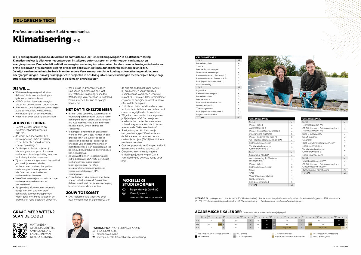 PATRICK PILAT • OPLEIDINGSHOOFD M + 32 476 94 33 08 E patrick. pilat @ pxl. be W www. pxl. be / elektromechanica-klimatisering