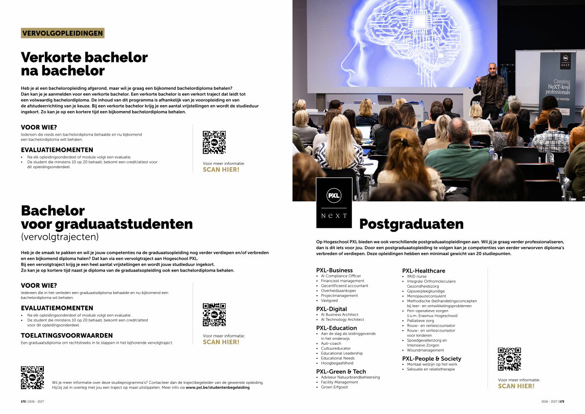 Wil je meer informatie over deze studieprogramma’ s? Contacteer dan de trajectbegeleider van de gewenste opleiding. Hij / zij zal in overleg met jou een traject op maat uitstippelen. Meer info via www. pxl. be / studentenbegeleiding