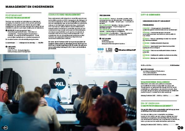 Deze seminarreeks reikt relevante en essentiële aspecten aan van bedrijfseconomie en KMO-management die bijdragen tot succesvol ondernemen. Het is een praktijkgerichte opleiding met een duidelijke link naar de beroepsrealiteit, de wereld van startups en het( familiaal) ondernemerschap, ondersteund door een team van vakspecialisten uit de bedrijfswereld. U verwerft inzicht in relevante en essentiële aspecten van het ondernemerschap en raakt vertrouwd met referentiekaders om nieuwe opportuniteiten op te sporen, te evalueren en te vertalen naar een succesvol ondernemingsplan. U zal ondervinden dat u in de bedrijfswereld( entrepreneurship) of binnen uw organisatie( intrapreneurship) beter kunt functioneren dankzij deze seminars.
