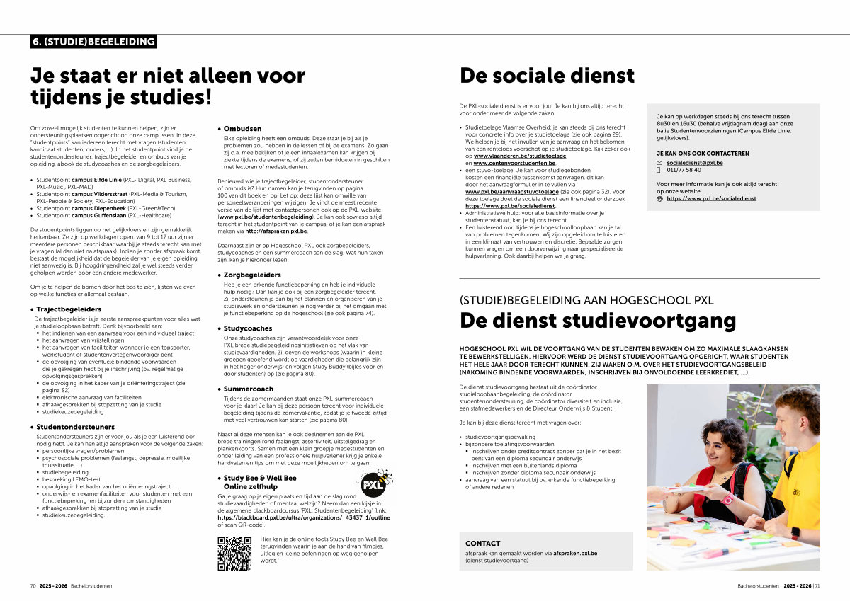 Voor meer informatie kan je ook altijd terecht op onze website https:// www. pxl. be / socialedienst