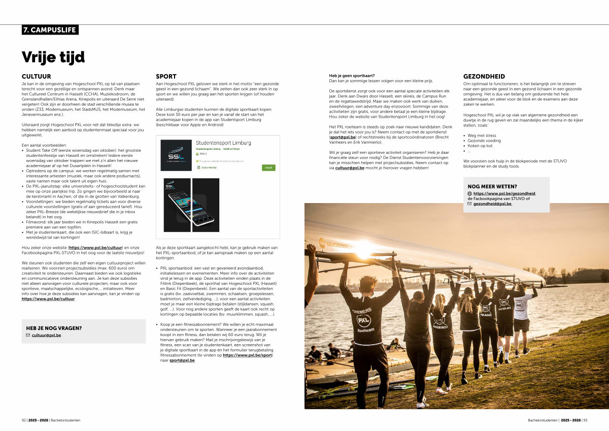 https:// www. pxl. be / gezondheid, de Facbookpagina van STUVO of gezondheid @ pxl. be