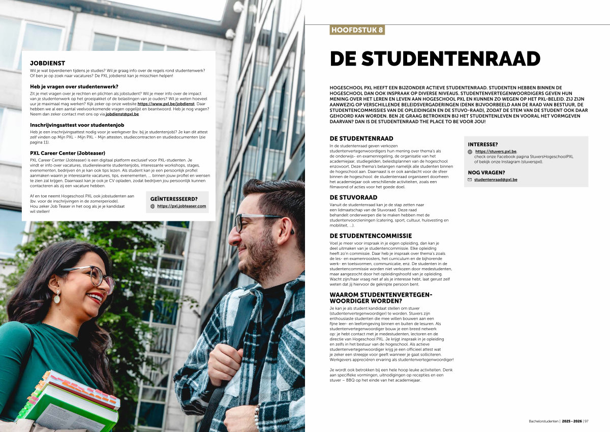 https:// stuvers. pxl. be, check onze Facebook pagina StuversHogeschoolPXL of bekijk onze Instagram( stuverspxl).