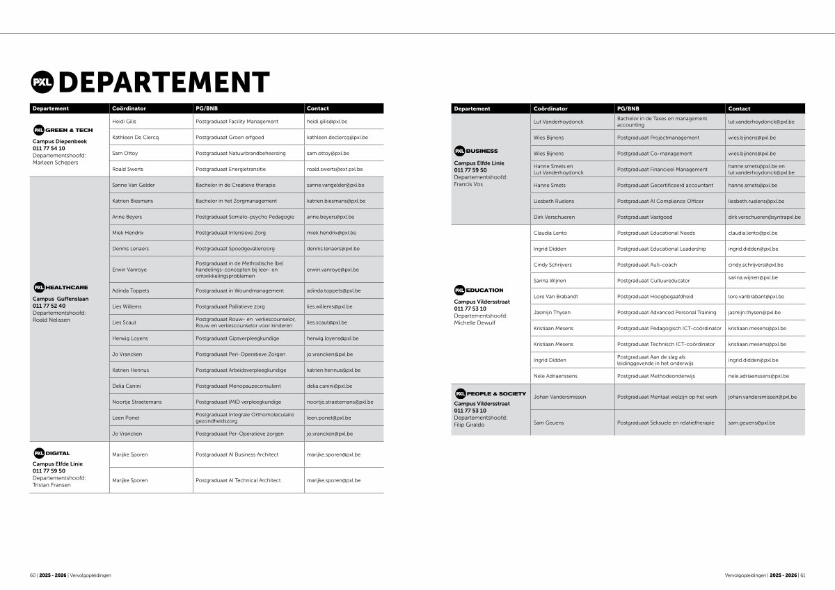 Departement Coördinator PG / BNB Contact Heidi Gilis Postgraduaat Facility Management heidi. gilis @ pxl. be