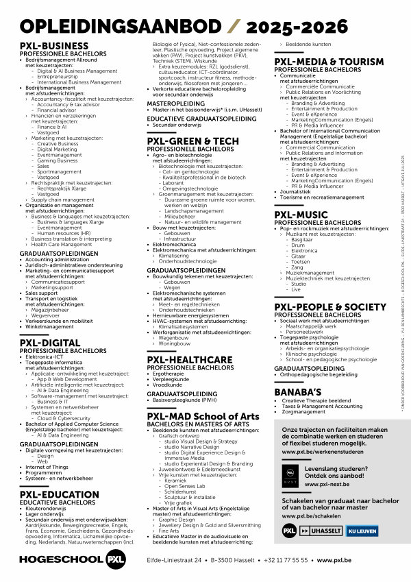 * ONDER VOORBEHOUD VAN GOEDKEURING – V. U. BEN LAMBRECHTS – HOGESCHOOL PXL – ELFDE – LINIESTRAAT 24 – 3500 HASSELT – UITGAVE JULI 2025