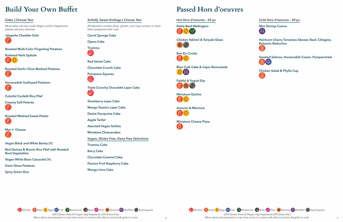 [ GF ] Gluten-Free [ V ] Vegan [ Vg ] Vegetarian [ DF ] Dairy-Free Menu items are prepared or may have come in contact with alliums( onions & garlic) or nuts.