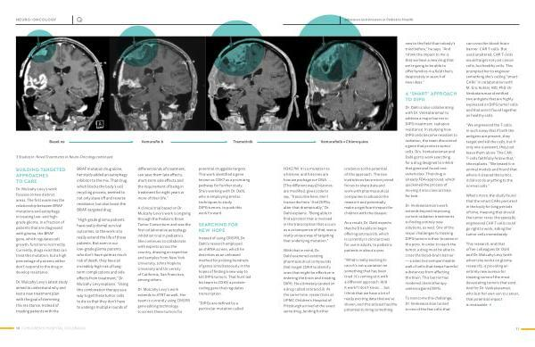 H3K27M . It is a mutation to credence to the potential a histone , and histones are of this approach . The two how we package our DNA . … institutions have since joined [ The different ways ] histones forces to share data and are modified , gives code to work with pharmaceutical say , ‘ Transcribe here , don ’ t companies to advance the transcribe here .’ And DIPGs research and potentially alter that dramatically ,” Dr . make a significant impact for Dahl explains . “ Being able to children with the disease . find a protein that is involved in the transcription that occurs