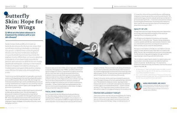 One particularly severe form of EB , recessive dystrophic EB ( RDEB ), is especially challenging to treat . RDEB is caused by a deficiency in type VII collagen ( C7 ), which is responsible for properly connecting the skin ’ s two main layers at the dermal-epidermal junction . In addition to severe wounds , blistering and scarring , patients experience malnutrition , anemia , esophageal strictures , dental problems , and fusion of the fingers and toes due to chronic scarring . These wounds predispose patients to infections , and they can develop into aggressive squamous cell carcinomas in adolescents and adults — a major cause of death among these patients . But there are two very promising therapies on the horizon : focal gene therapy and protein replacement therapy .