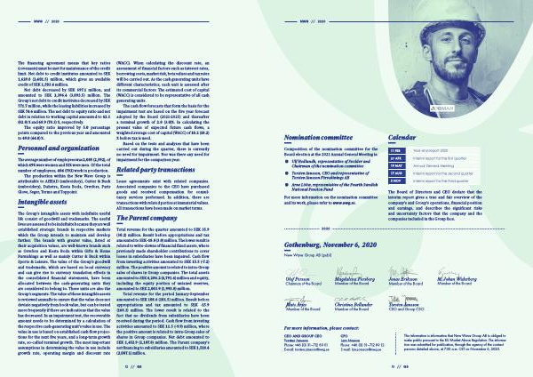 The Group ’ s intangible assets with indefinite useful life consist of goodwill and trademarks . The useful lives are assessed to be indefinite because they are well established strategic brands in respective markets which the Group intends to maintain and develop further . The brands with greater value , listed at their acquisition values , are well-known brands such as Orrefors and Kosta Boda within Gifts & Home Furnishings as well as mainly Cutter & Buck within Sports & Leisure . The value of the Group ’ s goodwill and trademarks , which are based on local currency and can give rise to currency translation effects in the consolidated financial statements , have been allocated between the cash-generating units they are considered to belong to . These units are also the Group ’ s segments . The value of these intangible assets is reviewed annually to ensure that the value does not deviate negatively from book value , but can be tested more frequently if there are indications that the value has decreased . In an impairment test , the recoverable amount needs to be determined by a calculation of the respective cash-generating unit ’ s value in use . The value in use is based on established cash flow projections for the next five years , and a long-term growth rate , so-called terminal growth . The most important assumptions in determining the value in use include growth rate , operating margin and discount rate