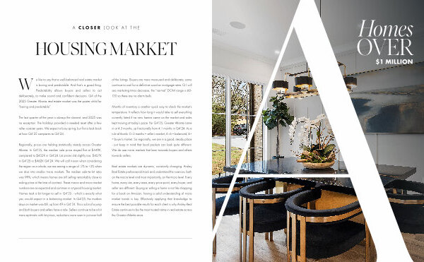 W e like to say that a well-balanced real estate market is boring and predictable. And that’ s a good thing. Predictability allows buyers and sellers to act deliberately, to make sound and confident decisions. Q4 of the 2025 Greater Atlanta real estate market was the poster child for“ boring and predictable”.