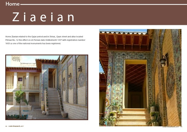 Home Ziaeian related to the Qajar period and in Shiraz , Qaan street and alley located Pitman No. 12 this effect on 26 Persian date Ordibehesht 1357 with registration number 1603 as one of the national monuments has been registered.