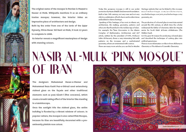 The original name of the mosque in Persian is Masjed-e Naseer ol Molk. Wikipedia mentions it as an ordinary Iranian mosque; however, the interior hides an impressive piece of architecture and design.