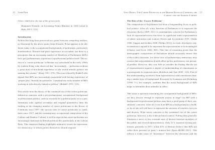 have pre-parliamentary experience in professional politics itself. The notion of a ‘career politician’ in Britain was articulated in the early 1980s
