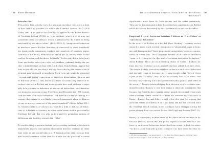 O’Halloran 2001: 2). This shows that there are contrasting views on interface violence in Belfast and demonstrates how such violence is arguably being diluted in definition as anti-social behaviour - and therefore