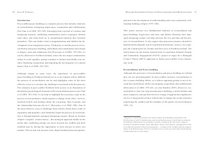 peace-building: forgiveness and trust, and further illustrates how managed intergroup contact can help increase the two and thus aid the process of reconciliation. It also argues that grassroots projects should be