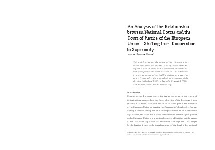This article examines the nature of the relationship between national courts and the Court of Justice of the European Union. It opens with a discussion about the notion of cooperation between these courts. This is followed