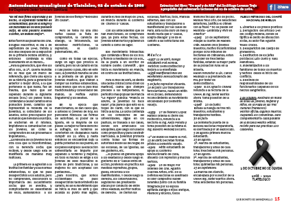 2 de octubre: Asesinato en masa de miles de jóvenes, mujeres y niños, en la Plaza de las Tres Culturas (Tlatelolco).