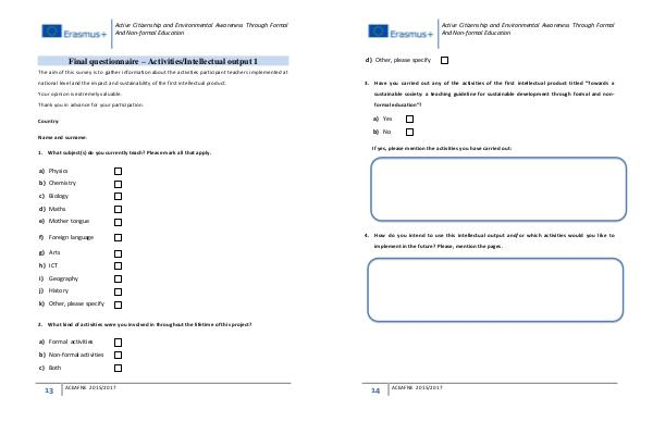 The aim of this survey is to gather information about the activities participant teachers implemented at