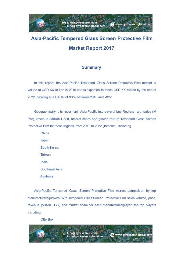 In this report, the Asia-Pacific Tempered Glass Screen Protective Film market is