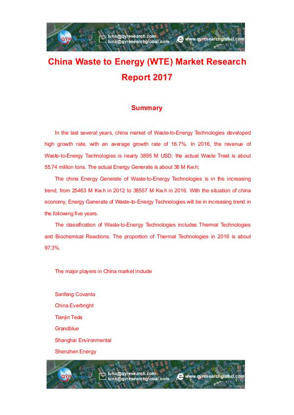 QYRESEARCH China Waste to Energy (WTE) Market Research Report