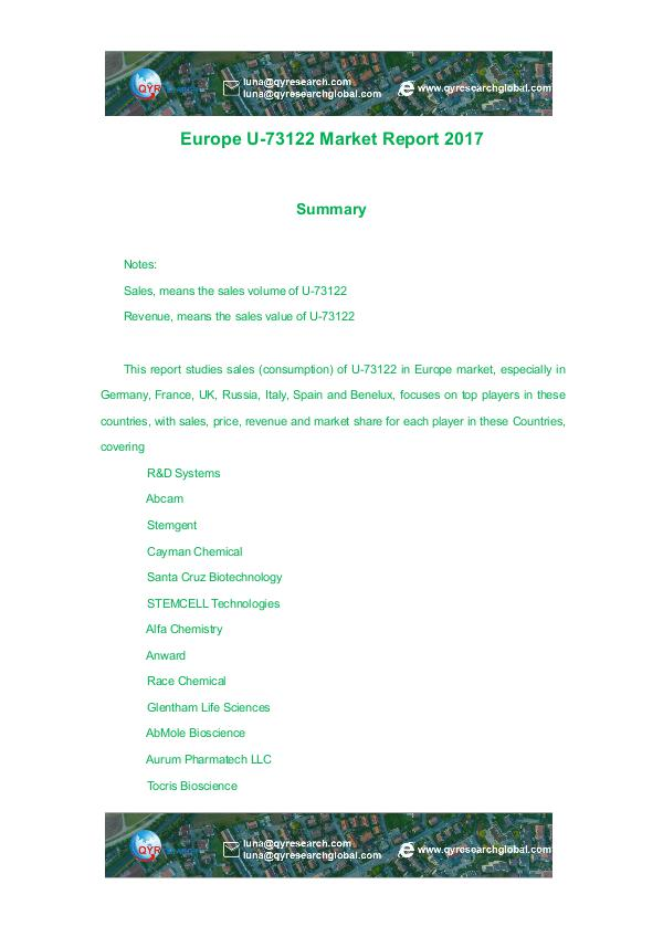 This report studies sales (consumption) of U-73122 in Europe market, especially in