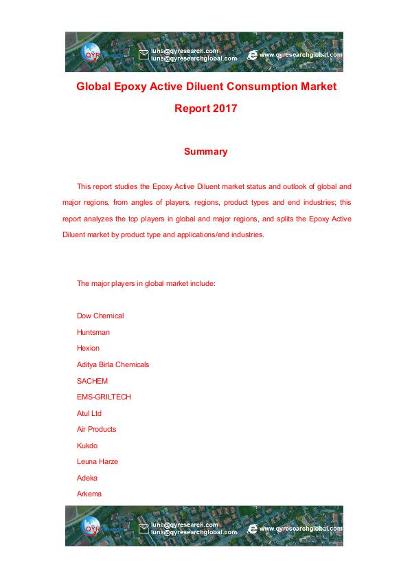QYRESEARCH Global Epoxy Active Diluent Consumption Market Rep